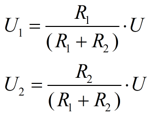 Формулы для нахождения величин напряжений на каждом из резисторов делителя
