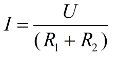В простейшем виде резистивный делитель напряжения состоит всего из пары резисторов, соединенных последовательно. Делимое напряжение подается на делитель, в результате на каждом резисторе падает определенная доля этого напряжения, пропорциональная номиналу резистора. Сумма падений напряжений равна здесь напряжению подаваемому на делитель.