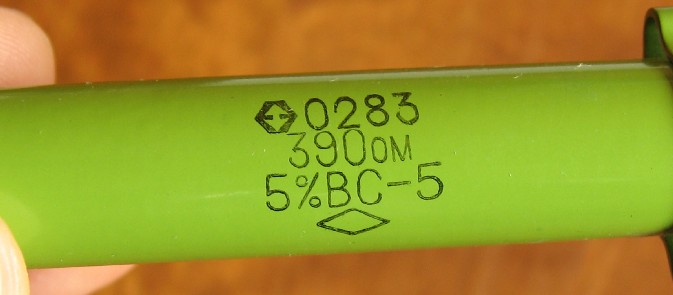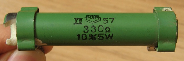 Слева — сопротивление Каминского (1920-30 годы, углеродистая мастика на керамике). Средний столбец — ТО (1930-1950, опрессованы пластмассой, ранние — с цветовой маркировкой). Справа — ВС, основной тип, применявшийся в 1940-1960-х годах (ВысокоСтабильные углеродистые).