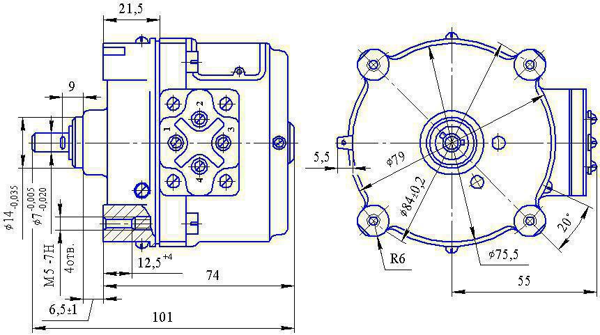 На схеме цифрами 1, 2, 3, 4 обозначены номера выводов обмоток электродвигателя, выведенных на клеммы мотор-редуктора.
