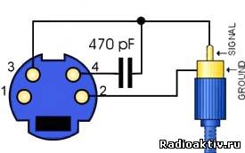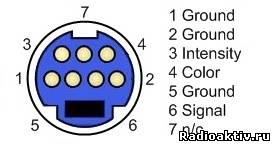 Рспиновка переходника, который позволяет получить композитный видеосигнал из сигналов S-Video.