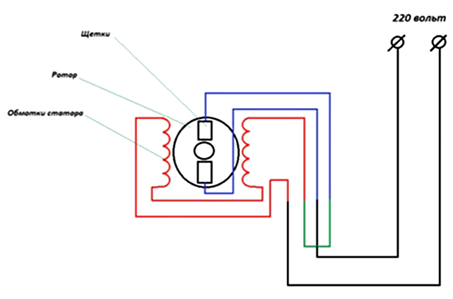 4. К первому выключателю подсоединить мотор по ниже предлагаемой схеме: