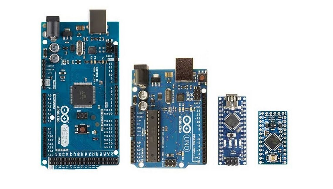 Под торговой маркой Arduino выпускается несколько плат с микроконтроллером и платы расширения (так называемые шилды). Большинство плат с микроконтроллером снабжены минимально необходимым набором обвязки для нормальной работы микроконтроллера (стабилизатор питания, кварцевый резонатор, цепочки сброса и т. п.).