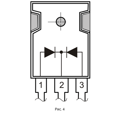 Электрическая схема и цоколевка диодной сборки Шоттки представлены на (рис. 4).